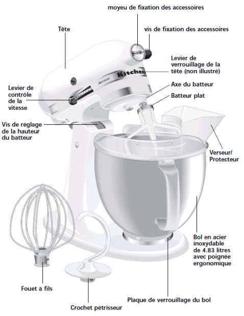 Les fonctionnalités qu’offre le robot sont les points les plus importants à prendre en compte. La plupart des robots disposent de trois accessoires de base : le fouet pour fouetter, la feuille pour crémer et le crochet pour pétrir.